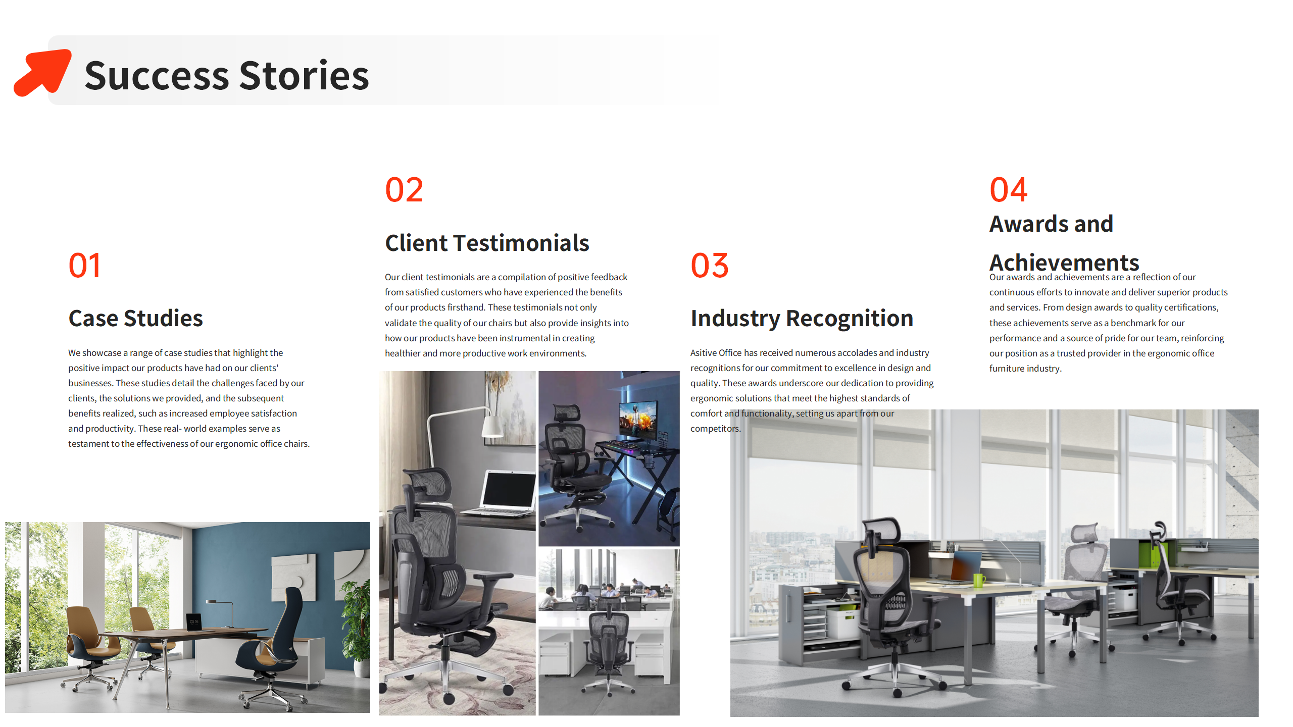 Asitive Office-Foshan Weiyu Furniture Company Limited specializes in the research, development, and sales of high-quality office leather chairs and ergonomic office mesh chairs. Our mesh chair workshop has enjoyed a long-standing partnership with the SIHOO brand, while our leather chair workshop is staffed with skilled technicians. Building on this foundation, we have continuously accumulated industry experience and technical prowess, gradually evolving into an enterprise with independent identity and outstanding capabilities. Since our inception, we have adhered to the core values of innovation, quality, and service, striving to provide comfortable and efficient seating solutions for modern workplaces.